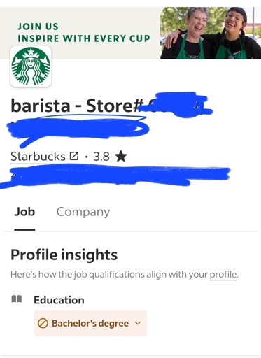 YES- you just nailed it. That was my entire point… their degree is worthless at Starbucks. OP was upset that Starbucks wanted a degree to work there but, as you said, it doesn’t matter. They (Starbucks) have an arbitrary barrier to entry with a piece of paper (degree) saying you are somebody now… only they can’t get the little things right. You know, the little things such as getting my order right… fat lot of good the degree did them if they can’t even serve me the coffee I asked for… you know, their job.