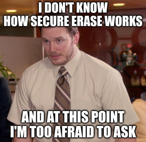 arrow-up10imageHow does SecureErase work?lemmy.worldmypasswordis1234@lemmy.world to No Stupid Questions@lemmy.worldEnglish · edit-21 year agomessage-square2linkfedilinkfile-text