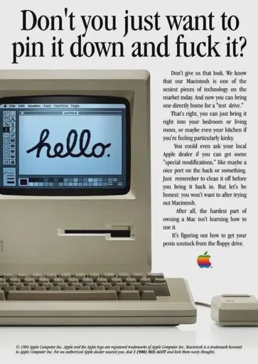 After all, the hardest part of owning a Mac isn’t learning how to use it. It’s figuring out how to get your penis unstuck from the floppy drive.