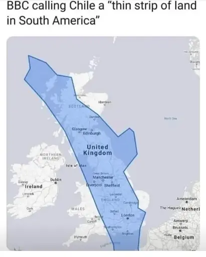 Also worth noting that although the UK isn’t all that wide, it has major port cities on both east and west coasts. Chile has an inhospitable mountain range on its eastern side, so really the population is concentrated in an area that’s much thinner than the geographic boundaries of the country.