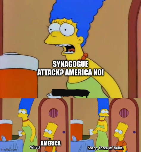 Genuinely, since when is america attacking synagogues “so common”? I hear about daily shooting, frequent attacks on churches, but synagogue attacks seem to happen WAY more in europe than the US.