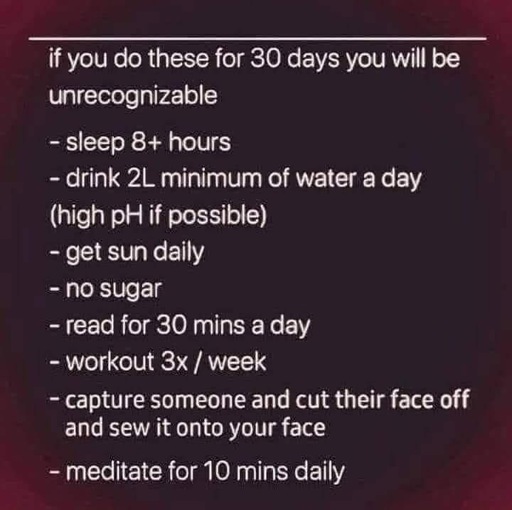 White text on black background that reads “if you do these for 30 days you will be unrecognizable