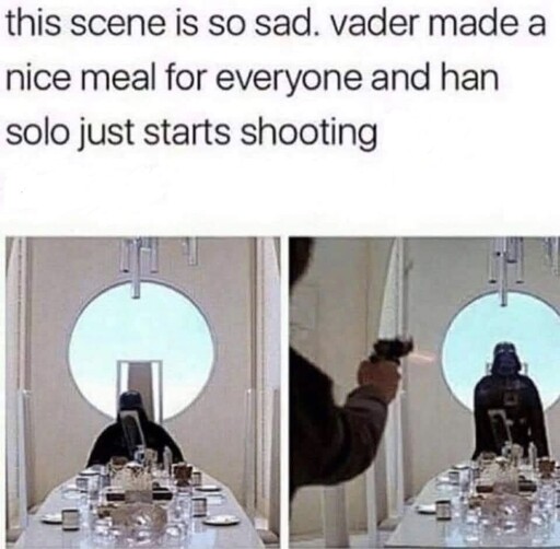 The Picard Maneuver@piefed.world to Star Wars Memes@lemmy.worldEnglish · 1 month agoDinner guests have no manners these daysmedia.piefed.worldimagemessage-square21linkfedilinkarrow-up1406