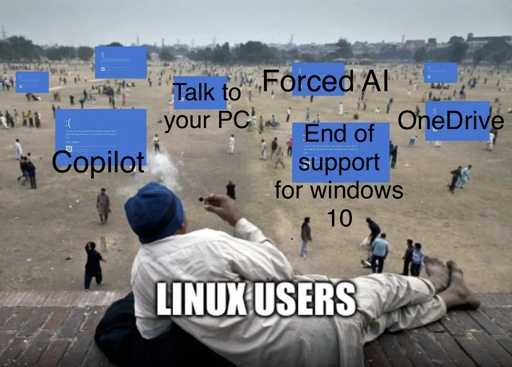 Linux users just watching the chaos like it’s a movie 🍿