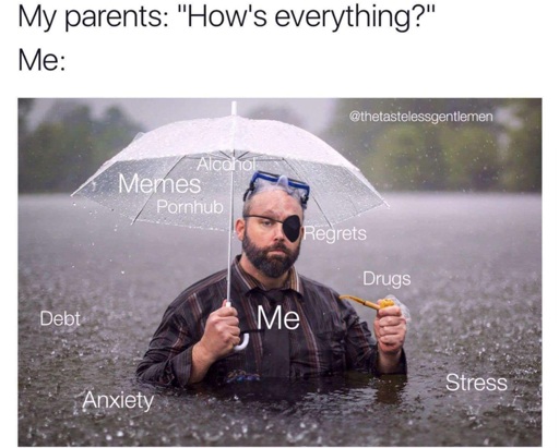 arrow-up1286image"I'm doing good. Everything is fine."lemmy.mlcm0002@lemmy.world to memes@lemmy.world · 11 months agomessage-square10linkfedilinkcross-posted to: memes@lemmy.ml