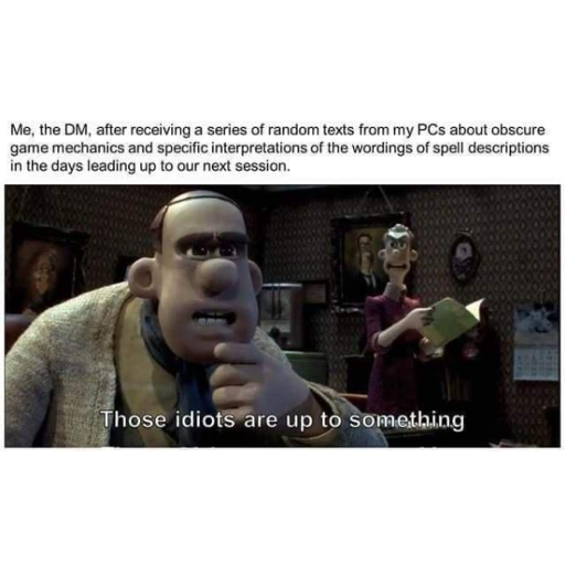 1·2 years agoI did check! It went something like: Me: Before I go further into this room, I’m backing up to the wall and shooting everything to see if any of it bleeds. Party: You sure you’re not going to get eaten by the wall? Me: …well if the wall is a mimic I’m already dead.